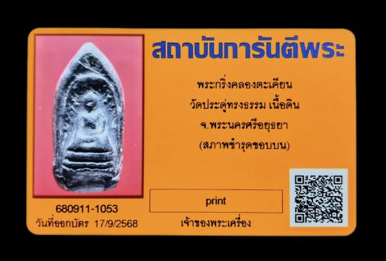 พระกริ่งคลองตะเคียน วัดประดู่ทรงธรรม เนื้อดิน จ.พระนครศรีอยุธยา พร้อมบัตรรับรอง ครับ