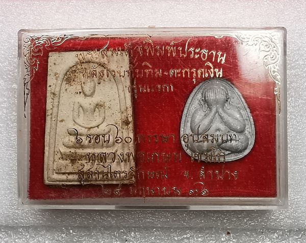 พระสมเด็จ(รุ่นแรก หลังโรยทับทิม+ตะกรุดเงิน)+พระปิดตา หลวงพ่อเกษม เขมโก สุสานไตรลักษณ์ จ.ลำปาง ปี2536 กล่องเดิม |