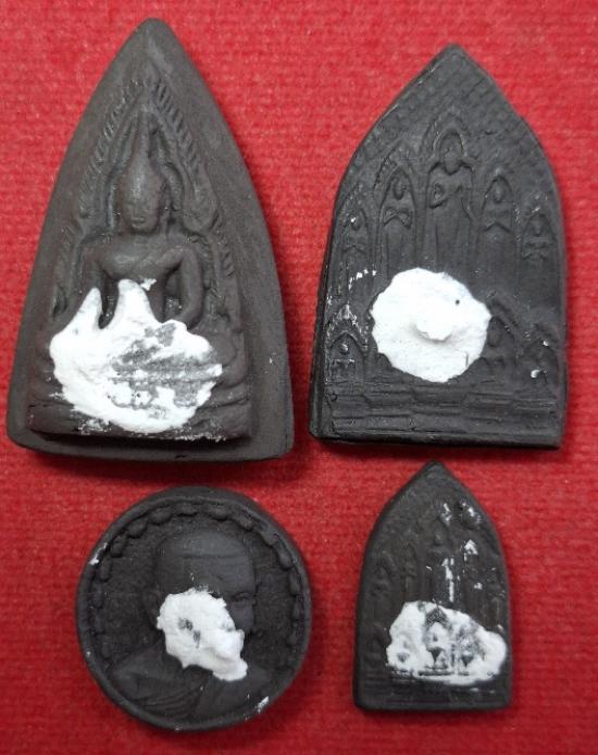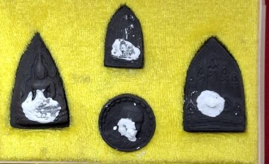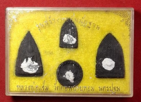 หลวงพ่อแช่ม วัดดอนยายหอม จ.นครปฐม เป็นชุดกรรม รุ่นสร้างหอกัมมัฏฐาน เป็นพระเนื้อผงใบลาน พระสภาพสวยมากๆทุกองค์ และพิเศษมากๆตรงที่มีแป้งเจิมจากหลวงพ่อแช่มด้วยนะครับ (กล่องสภาพสมบูรณ์ เขี้ยวไม่หัก) |