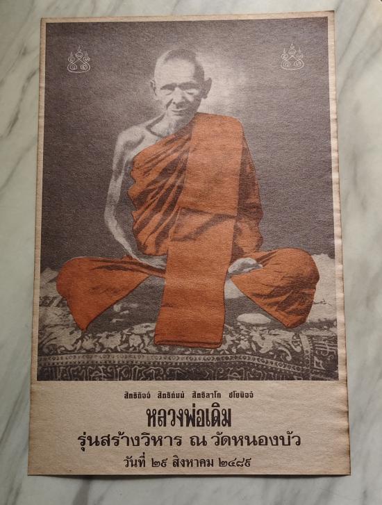 ***เคาะเดียว***ภาพพิมพ์หลวงพ่อเดิม วัดหนองโพธิ์ รุ่นสร้างวิหาร ปี2489 ขนาดบ ูชา 7x11 นิ้ว |