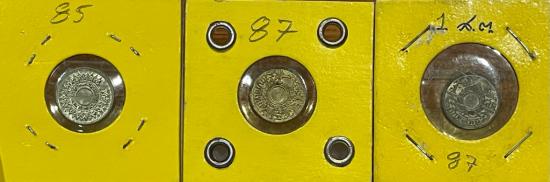 ++++50++++เหรียญ1สตางค์ เนื้อดีบุก 3เหรียญ ปี2485=1เหรียญ ปี2487=2เหรียญ สวย