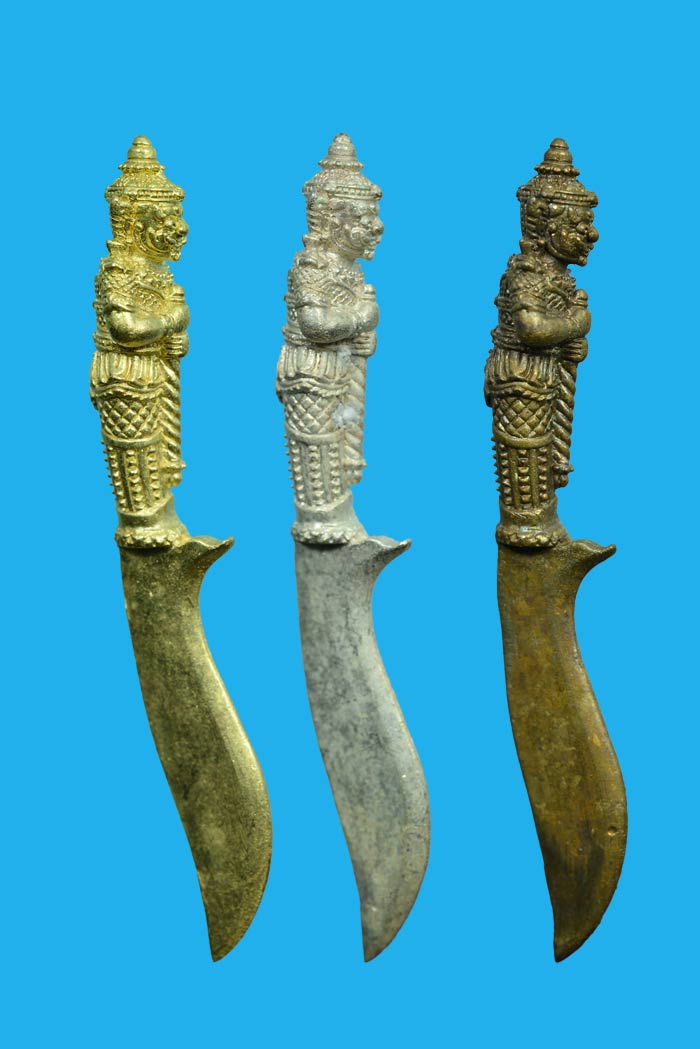 ๓ เล่ม เนื้อชนวน เนื้อชนวนสำริดเงิน เนื้อชนวนผิวรุ้ง มีดท้าวเวสสุสวรรณ หลวงปู่ณรงค์ สาโม วัดมงคลนิมตบ้านโนนเมือง อ.พยัคฆ์ภูมิพิสัย จ.มหาสารคาม ปี ๒๕๖๑ |