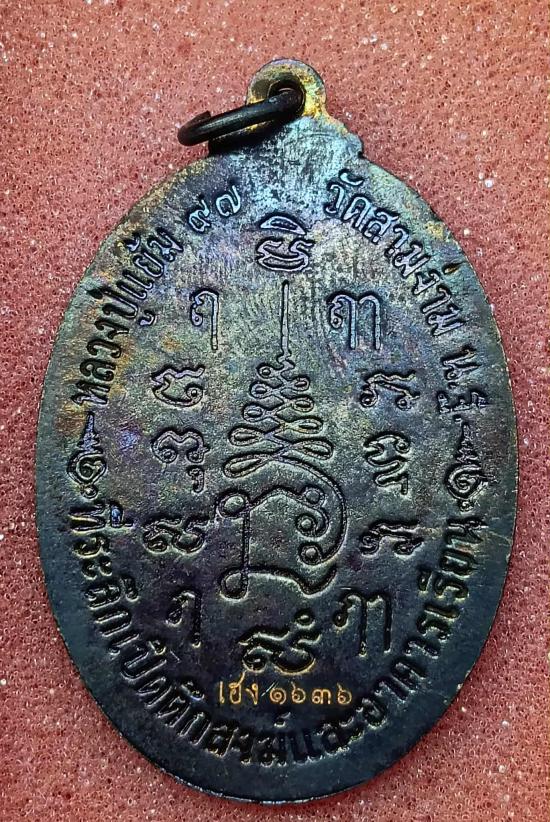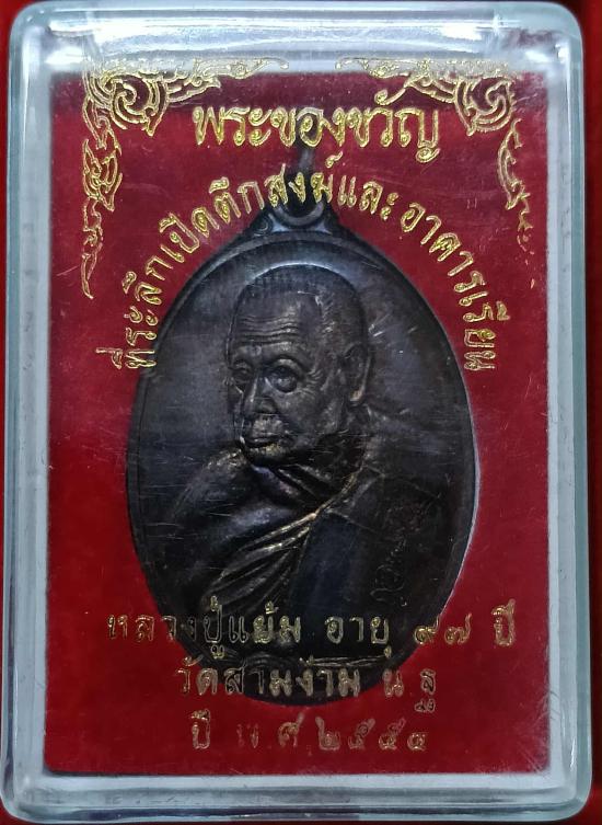 เหรียญหลวงปู่แย้ม วัดสามง่าม พระของขวัญที่ระลึกเปิดตึกสงฆ์และอาคารเรียน เนื้อทองแดง อายุ 97 ปี ปี2554 ผิวรุ้งสวย มีรอยจาร รับประตามกฎ |