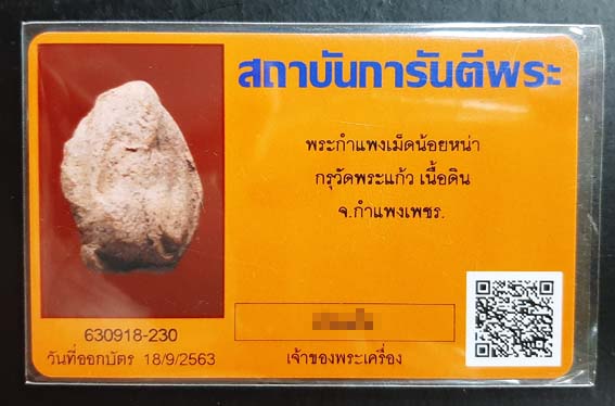 พระกำแพงเม็ดน้อยหน่า เนื้อดิน กรุวัดพระแก้ว จ.กำแพงเพชร พร้อมบัตรรับรองครับ |