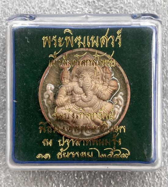 พระพิฆเนศ รุ่นบังเกิดทรัพย์ เนื้อสังคโลกสุโขทัย พิธีเทวาภิเษก ปราสาทพนมรุ้ง ปี 49 หลวงปู่หงษ์ พรหมปัญโญ ปลุกเสก |