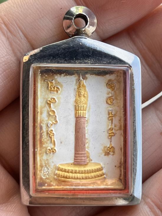 เหรียญแสตมป์หลักเมือง เนื้อสามกษัตริย์ 2 โ๊ด๊ด รุ่นขุมทรัพย์ ปี 2549 วัดพระมหาธาตุฯ จ.นครศรีธรรมราช