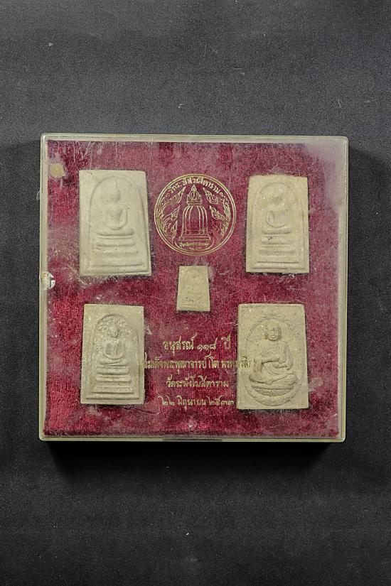 **** พระสมเด็จวัดระฆังฯ 118 ปี มีทั้งหมด 5 พิมพ์ ได้แก่ พระสมเด็จพิมพ์พระประธาน (ใหญ่) พิมพ์สมเด็จปรกโพธิ์, พิมพ์สมเด็จฐานแซม, พิมพ์สมเด็จคะแนน, พิมพ์รูปเหมือนสมเด็จฯ โต ซึ่งทุกพิมพ์ทางวัดได้สั่งจัดทำรูปแบบแม่พิมพ์ขึ้นใหม่ทั้งหมด บรรจุอยู่ในกล่องพลาสติกจตุรัส ขนาด 10X10 ซม. ฝาใสผ้ากัมมะหยี่สีแดงเข้ม ตัวหนังสือสกรีนทอง ด้านหลังตัวกล่องสีขาวครีม พื้นเป็นลายหยาบ มีรูปตราวัดระฆัง