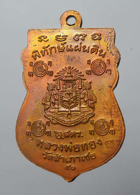 พิทักษ์แผ่นดิน ปี 2551 พิมพ์เสมาหัวโต พระหลวงปู่ทวด หลวงพ่อทอง วัดสำเภาเชย จ.ปัตตานี เนื้อทองแดง หลังกรมตำรวจ ตอกโค๊ด |