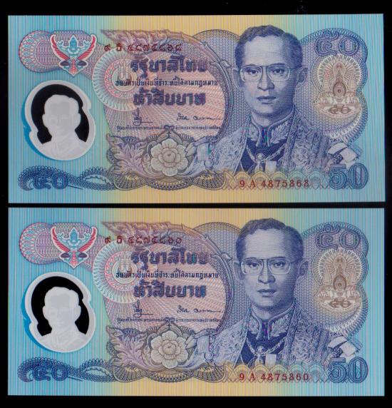 ## ธนบัตร 50 บาท ## กาญจนา ## 2 ฉบับ ## ไม่ผ่านการใช้ |