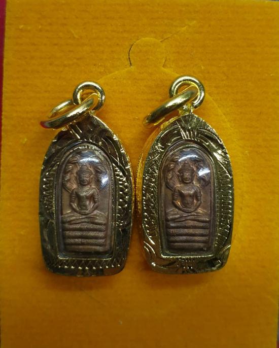 จิ๋วแต่แจ๋ว พระปรกใบมะขาม เนื้อทองแดง วัดระฆังฯ รุ่นเสาร์ห้า ปี2539 พร้อมกัน 2 องค์ เลี่ยมไมครอน สภาพเดิม ได้จากพระบ้านครับ