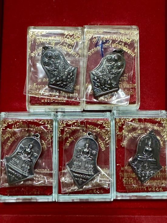 เหรียญจำปี วัดจุฬามณี เนื้อทองแดงรมดำ 5 เหรียญ พร้อมกล่องเดิม |