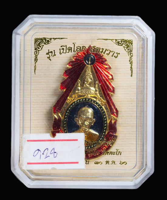 เข็มกลัดหลวงพ่อรวย รุ่นเปิดโลก สตมวาร ปี60 เนื้อกะไหล่ทองลงยาสีแดง no.928 |