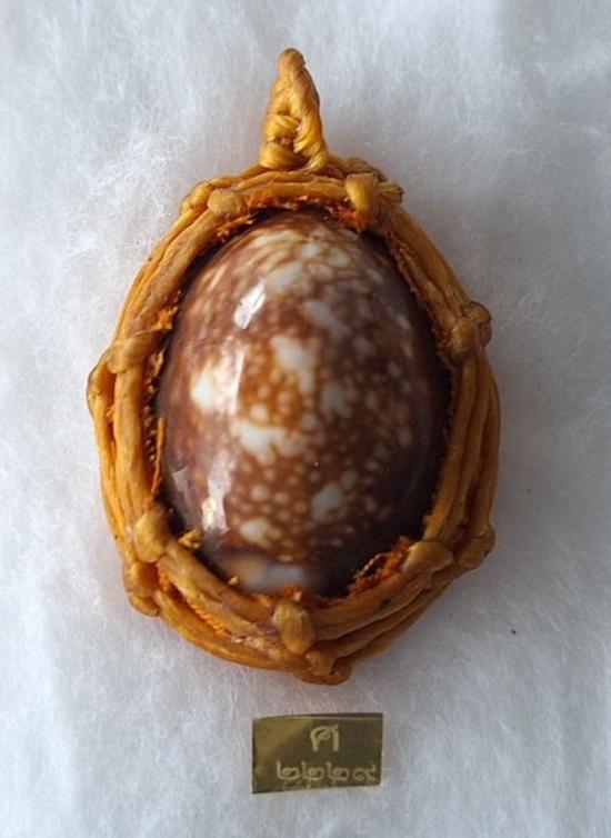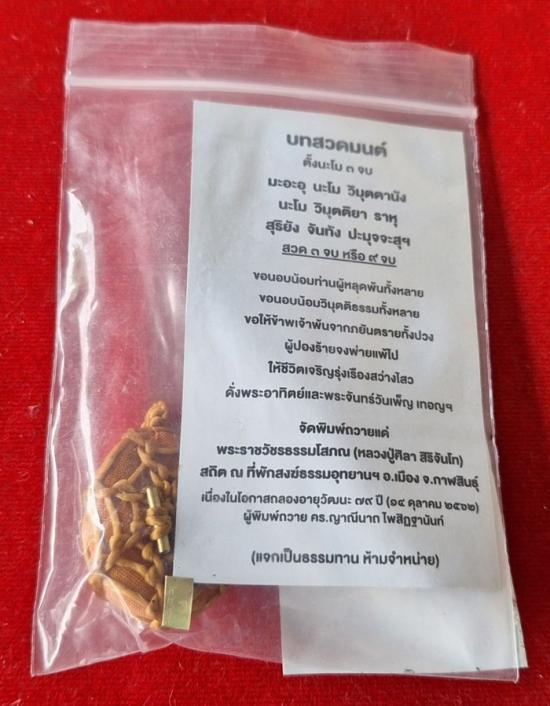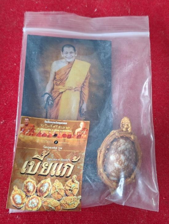 เบี้ยแก้ หุ้มจีวร ถักเชือก หลวงปู่ศิลา วัดโพธิ์ศรีสะอาด มีแผ่นเลขกำกับ ฝังตะกรุดทองเหลือง พร้อมใบคาถา ปี2567 |