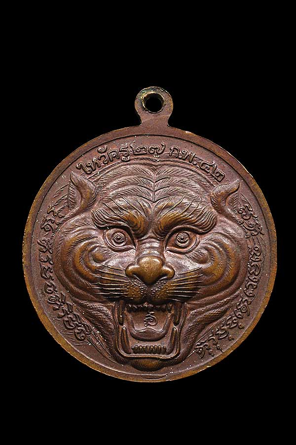วัดใจเคาะเดียวแดง เหรียญไหว้ครู หลังหน้าเสือ หลวงพ่อเปิ่น ปี42 วัดบางพระ นครปฐม |