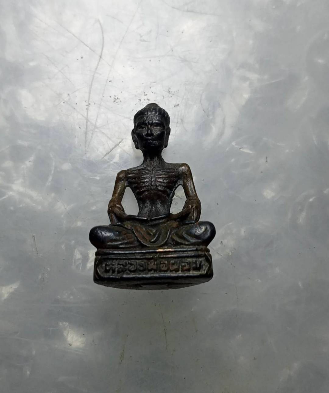 รูปหล่อหลวงพ่อผอม (เดินหน) ด้านหลังเขียนว่า อ่างทอง สวยสวย เคาะเดียวเเดง ครับ |