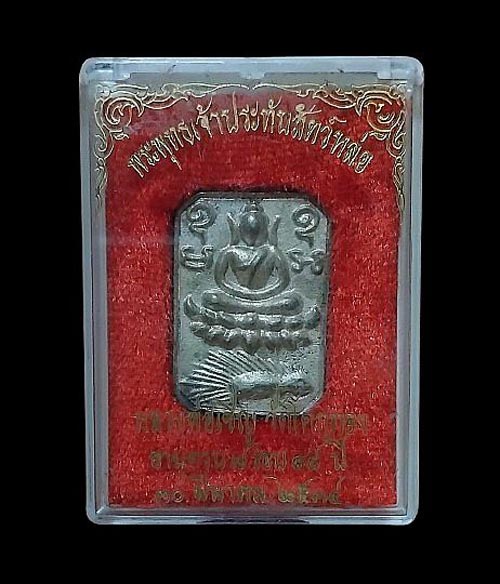 เหรียญหล่อพระพุทธเจ้าประทับสัตว์ (ทรงเม่น) หลวงพ่อเชิญ วัดโคกทอง จ.อยุธยา รุ่น 7 รอบ ปี 34..เนื้อเงิน..กล่องเดิม..วัดใจ 100