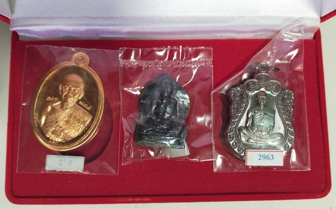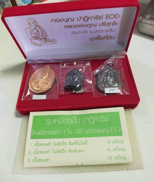 หลวงพ่อคูณ eod พร้อมกล่องยกชุด 3 องค์ เหรียญเสมา รูปหล่อ เหรียญรูปไข่ สภาพสวยๆ เคาะเดียวครับ