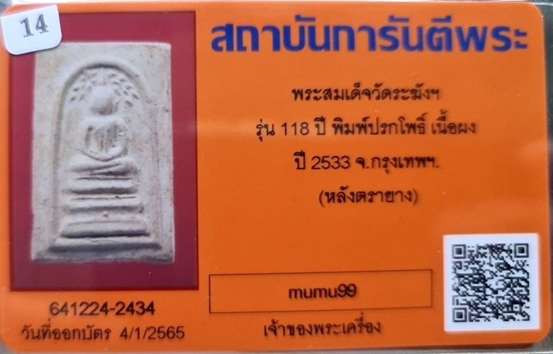 ## สมเด็จวัดระฆัง อนุสรณ์ 118ปี พ.ศ.2533 พิมพ์ปรกโพธิ์ "พระสวยเดิมไม่ผ่านการใช้.หลังปั้มตรายาง...พร้อมบัตรรับรอง.""รับประกันแท้ตลอดฃีพและแท้ตามมาตรฐานสากล....... อนาคตดี ถูกๆเลยครับ.... ราคายังไม่แรง. |