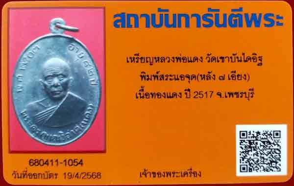 เหรียญหลวงพ่อแดง วัดเขาบันไดอิฐ พิมพ์สระแอจุด(พิมพ์ ๗ เอียง) เนื้อทองแดง ปี2517 จ.เพชรบุรี