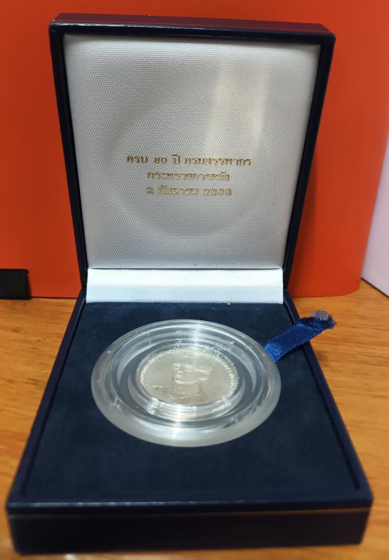 *เคาะเดียว* เหรียญในหลวงร.9 ครบ 80ปี กรมสรรพากร กระทรวงการคลัง ปี2538 (((เนื้อเงิน))) กล่องเดิม |