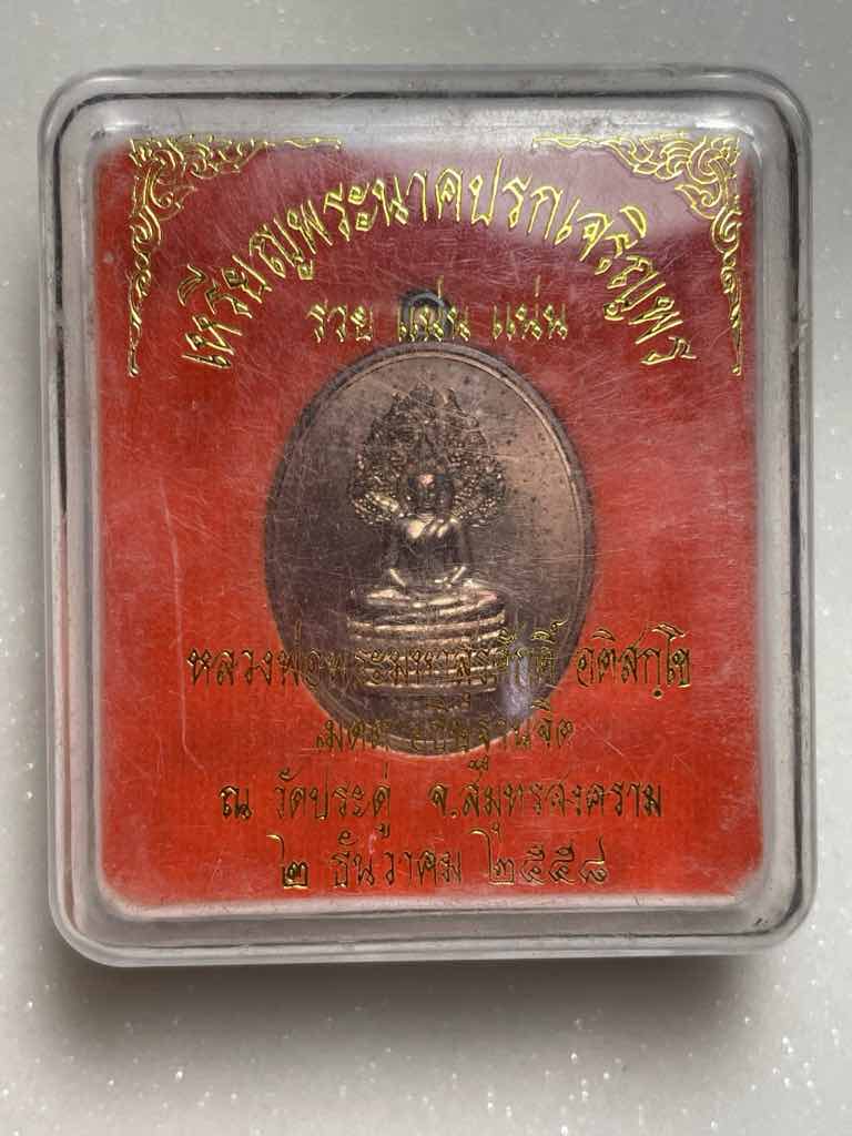 350.- ems พระนาคปรกเจริญพร หลัง พระแม่ธรณีบีบมวยผม พระมหาสุรศักดิ์ วัดประดู่ฯ เนื้อนวะโลหะ no.893 ราคาจอง 600 สวยเดิม คากล่อง |