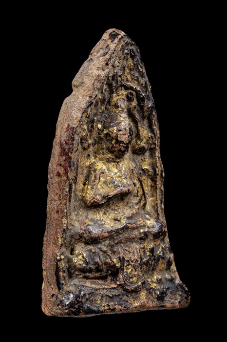 พระโคนสมอ ปางพระอุปคุตมหาเถระ (ปางจกบาตร) เนื้อดิน ลงรัก ปิดทอง จัดเป็นพระพิมพ์ที่ค่อนข้างหายากครับ พบเจอน้อยครับ องค์นี้พระสภาพสวย น่ารัก พระติดหน้าตา พระลงรัก ปิดทองเก่าเดิมๆ มาจากกรุครับ รายละเอียดของพระคม ชัด ลึก พระหนา แข็งแรง สภาพสมบูรณ์ครับ พี่ๆ ที่สนใจหรือกำลังมองหาอยู่ เชิญร่วมประมูลให้ราคากันครับ