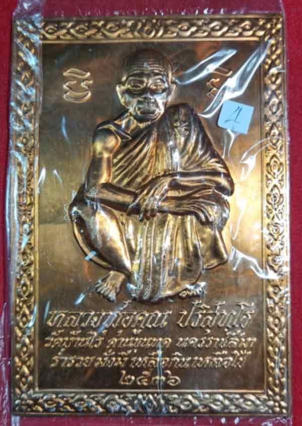 แผ่นปั้มรูปเหมือน หลวงพ่อคูณ ขนาด 3.5x5.0 นิ้ว เนื้อทองแดง ถุงเดิม ปี36 |