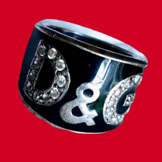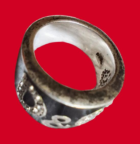 {{{... วัดใจ ...}}} ... แหวนเงินแท้ 925 ... ฝังเพชร Cz. ลงยาสีดำ ... น้ำหนัก 15.98 กรัม ... |