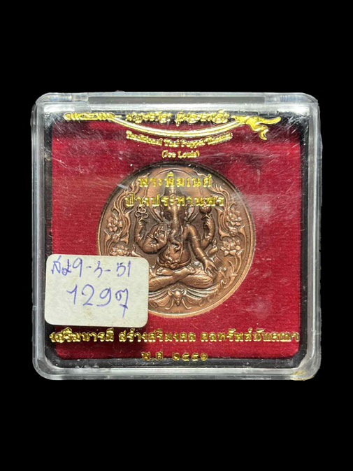 พระพิฆเนศ ปางประทานพร เสริมบารมี สร้างศรีมงคล ดลทรัพย์นับคณา พ.ศ.2551 เนื้อทองแดงรมซาติน หมายเลข 1297 |