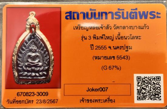 ปี 2555 หมายเลข 5543 เลี่ยมทองg67% พร้อมบัตรรับรองครับ