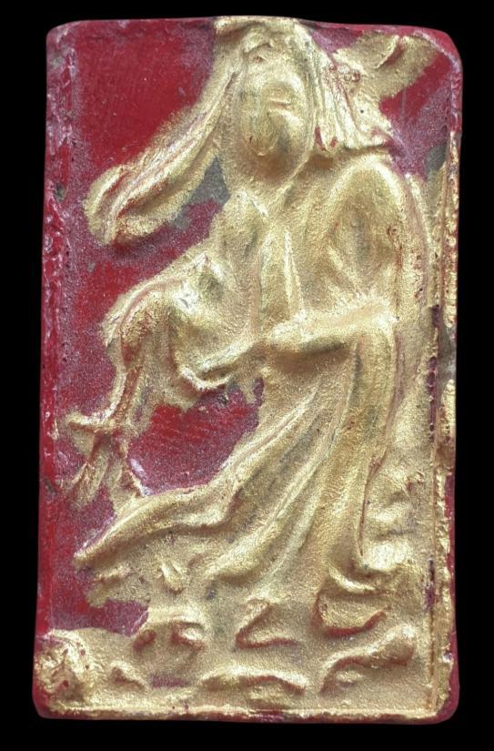 วัดใจ พระเนื้อดินเผา เจ้าแม่กวนอิม หลังหนังสือจีน ลงชาดปิดทอง (พ่อท่านคล้าย ปลุกเสก ปี 2500 |