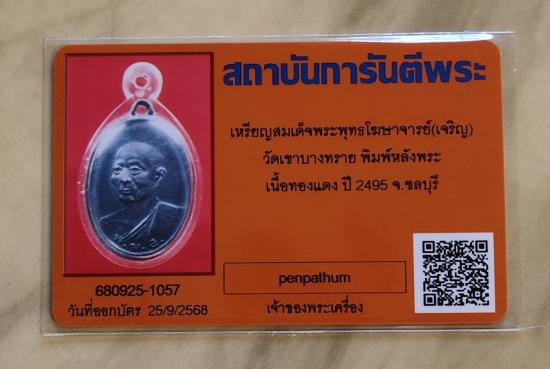 เหรียญ พ.ฆ.อ. สมเด็จพระพุทธโฆษาจารย์(เจริญ) วัดเขาบางทราย จ.ชลบุรี ปี2495 เนื้อทองแดง เลี่ยมพร้อมใช้ + บัตรจี |