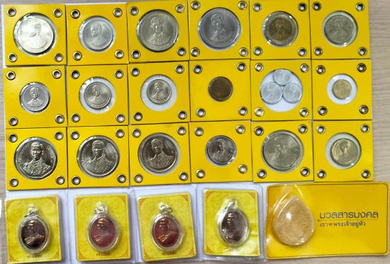 ชุดเหรียญกาญจนาภิเษกครบชุด พร้อมเหรียญ 20บาท และ 2บาท ชนิดไม่มีอุณาโลม, เหรียญ 60พรรษาในหลวง ร.9 ,เหรียญรัชมังคลาภิเษก และพระผงรูปในหลวง |