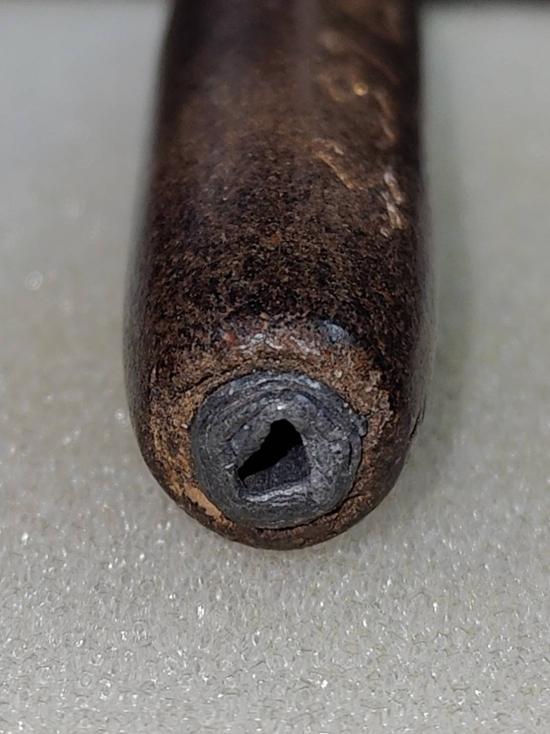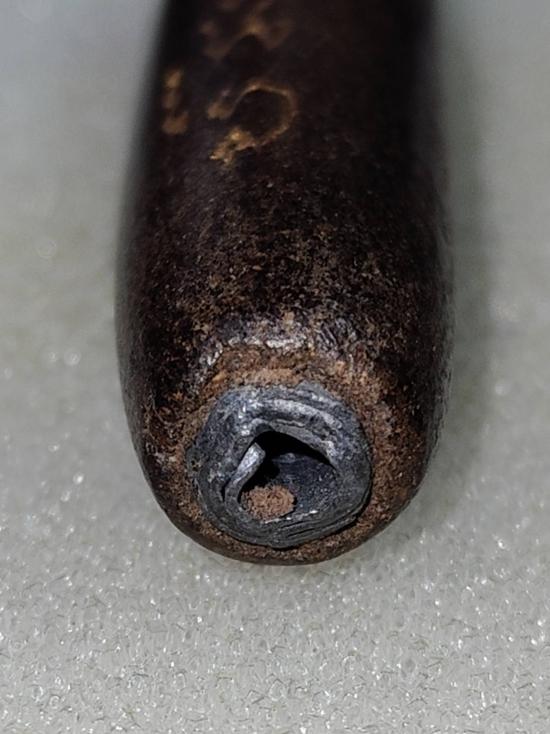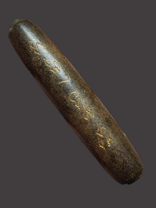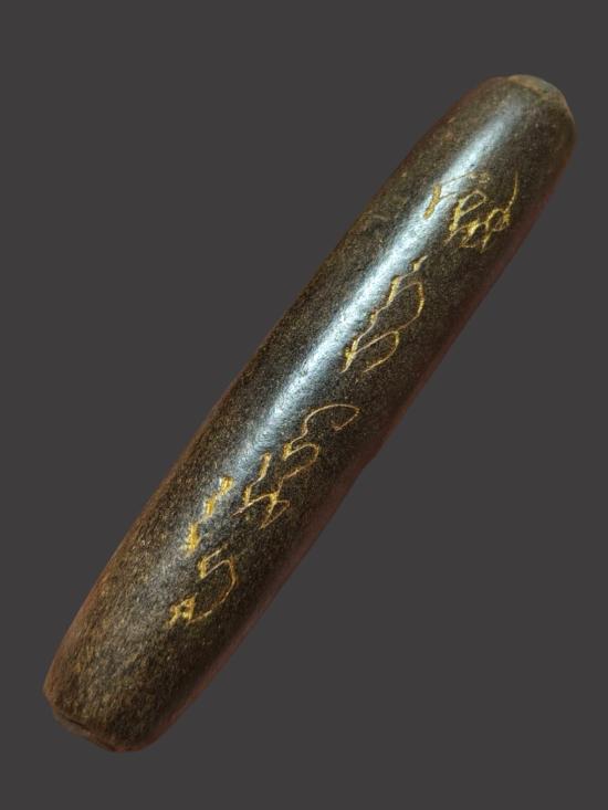 A910.ตะกรุดเนื้อตะกั่ว ผอกผงยามีรอยจารย์ ไม่ทราบที่ วัดใจครับ เคาะดียวเเดง