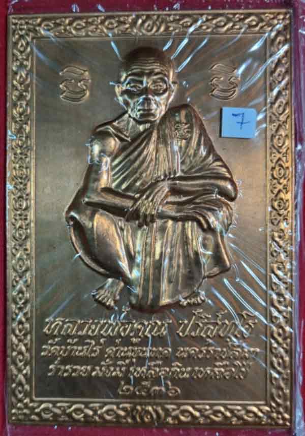 แผ่นปั้มรูปเหมือน หลวงพ่อคูณ ขนาด 3.5x5.0 นิ้ว เนื้อทองแดง ถุงเดิม ปี36 |