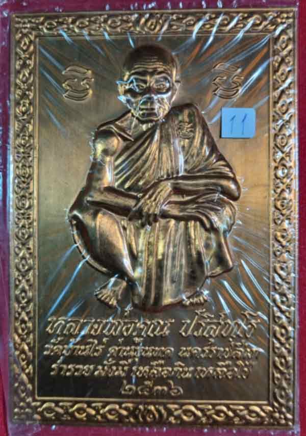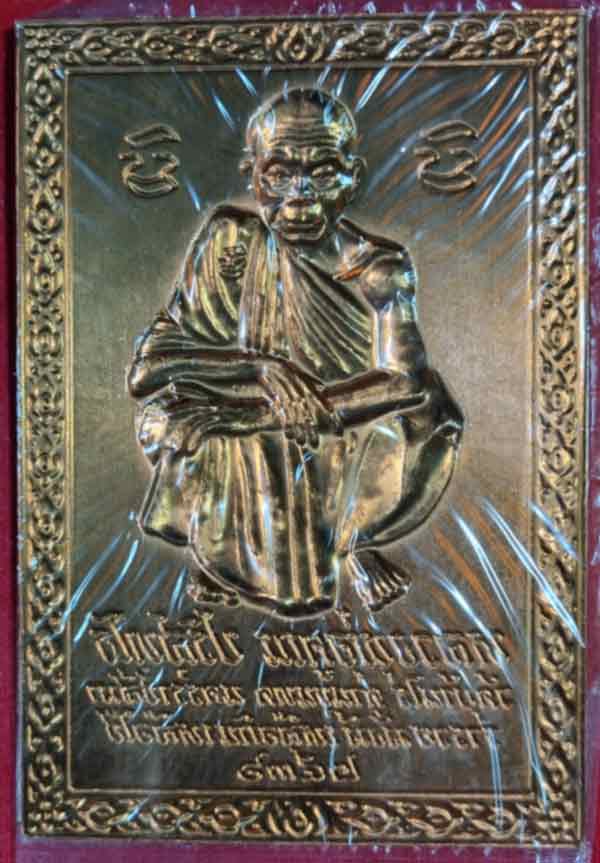 แผ่นปั้มรูปเหมือน หลวงพ่อคูณ ขนาด 3.5x5.0 นิ้ว เนื้อทองแดง ถุงเดิม ปี36 |