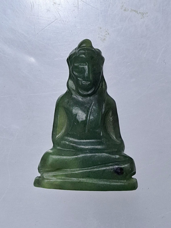 พระหยก แกะมือ พิมพ์พระพุทธ จากส่วนหนึ่งของพระหยกใหญ่ หลวงพ่อวิริยังค์ วัดธรรมมงคล กรุงเทพฯ ปี 2536 รับประกันแท้ |