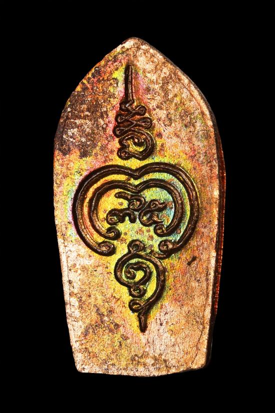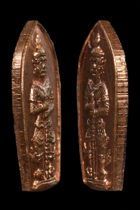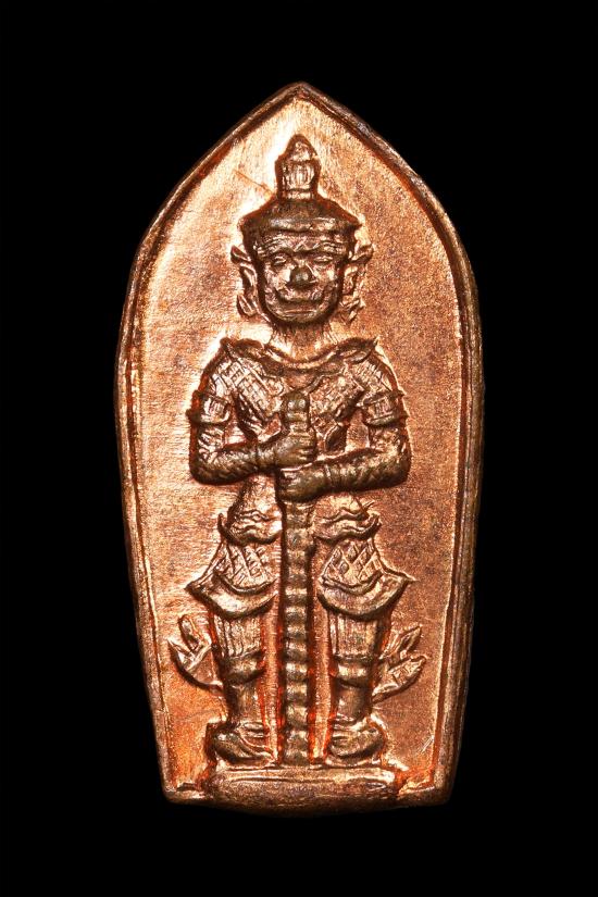 พระปรกใบมะขามท้าวเวสสุวรรณ พระอาจารย์อิฏฐ์ วัดจุฬามณี รุ่นแรกหลังยันต์นูน(บล็อกนิยมสุด) เนื้อทองแดง จัดสร้างปี พ.ศ. 2533 สภาพสวย