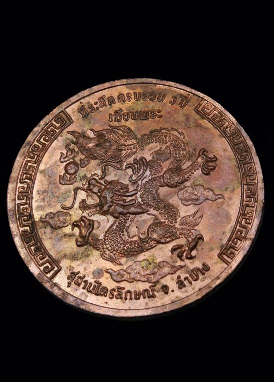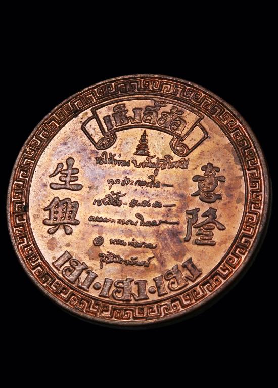เคาะเดียวแดง เหรียญกลมเซ็งลี้ฮ้อ เฮง เฮง เฮง ที่ระลึกครบรอบ 3 ปีเซียนพระ หลวงพ่อเกษม เขมโก ปี 2536 เนื้อทองแดงผิวไฟ |