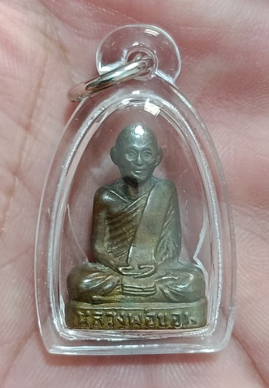รูปหล่อปั๊มหลวงพ่อขอม วัดไผ่โรงวัว สุพรรณบุรี ปี 2505 เนื้อทองเหลือง |