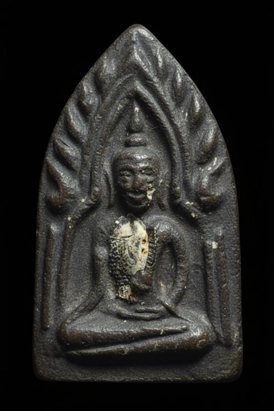 พระพิมพ์ขุนแผน เนื้อผง ฝังปลาตะเพียนเงินตรงหน้าอก หลังจาร