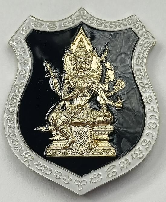 เหรียญท้าวมหาพรหม เจ้าสัวพันล้าน (จัดสร้างโดยบอย ท่าพระจันทร์) เนื้ออาปาก้า ลงยาพื้นดำ ขอบขาว เบอร์ 103 พร้อมกล่องครับ
