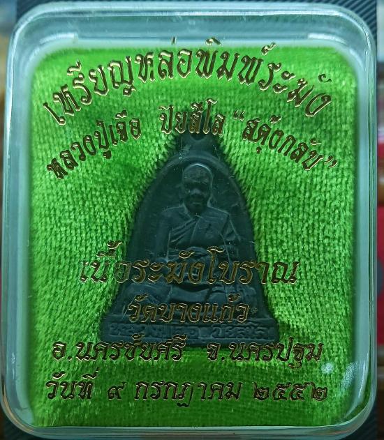 เหรียญหล่อพิมพ์ระฆัง หลวงปู่เจือ วัดกลางบางแก้ว เนื้อระฆังโบราณ ปี 2552 พิมพ์สะดุ้งกลับ |