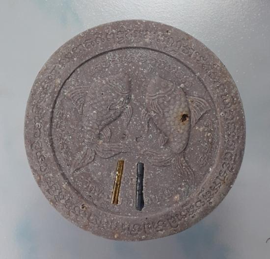 พระผงรูปเหมือน พิมพ์ขนมเปี๊ยะ วัดพระขาว จ.อยุธยา ปี2544 เนื้อว่าน มีเส้นเกศาด้านหน้า และฝังตะกรุดเงิน,ทอง ตอกหมายเลข #๖๕ ด้านหลัง พร้อมกล่องเดิม |