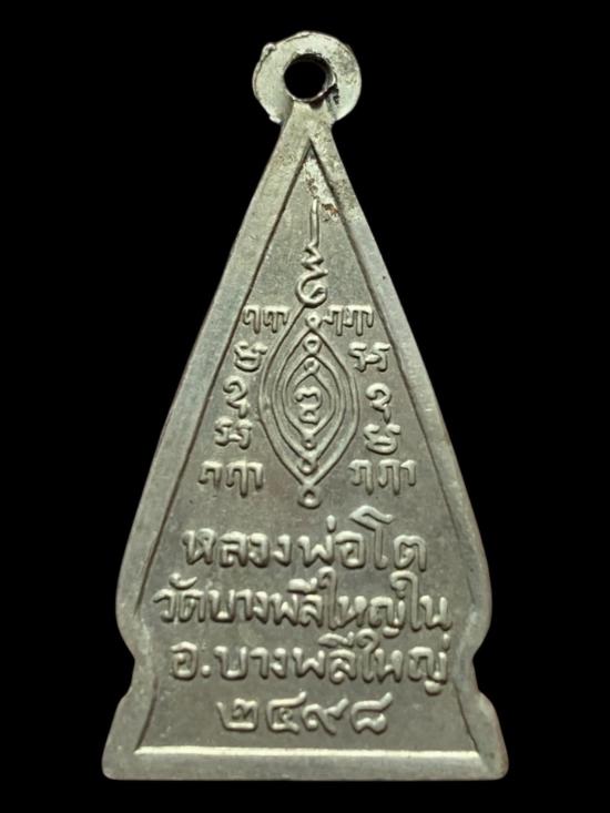 เหรียญสามเหลี่ยม หลวงพ่อโต วัดบางพลีใหญ่ใน จ.สมุทรปราการ เนื้ออัลปาก้า ปี.2498