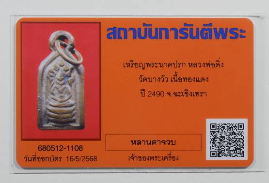 เหรียญพระนาคปรก หลวงพ่อดิ่ง วัดบางวัว ปี2490 (ตอก อริยศีล) หายากครับ