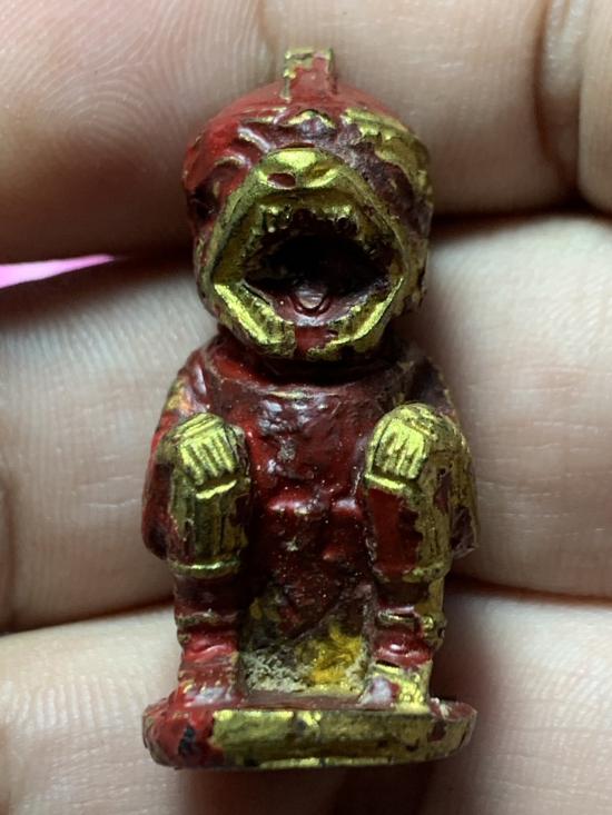 หนุมานไม้แกะทาชาดแดงทองเก่าๆ ไม่ทราบที่ครับ |