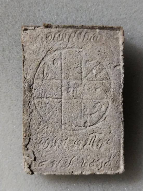 พระผงดวงมงคล หลวงพ่อเกษม สุสานไตรลักษณ์ ติดจีวรชิ้นใหญ่ เห็นเกศาที่แก้ม.....วัดใจเคาะเดียว |