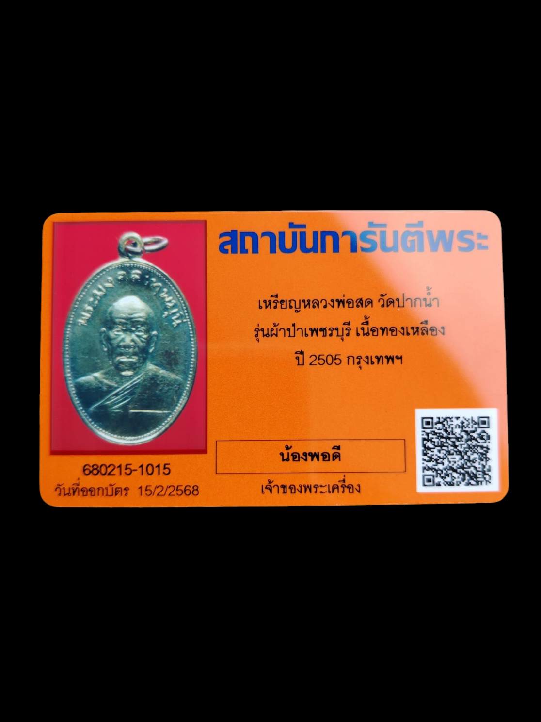 เหรียญหลวงพ่อสด รุ่นทอดผ้าป่า ปี 05 มาพร้อมบัตร