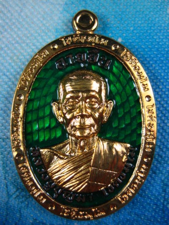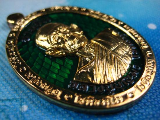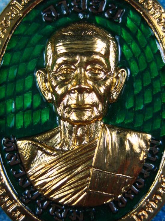 ## เนื้อนวะโลหะ ## เหรียญอายุายืน เนื้อนวะโลหะลงยาเขียว หน้า- หลัง หน้ากากชุบทอง ขอบชุบทอง หลวงปู่บุญมา จ.ปราจีนบุรี (---B22---) |